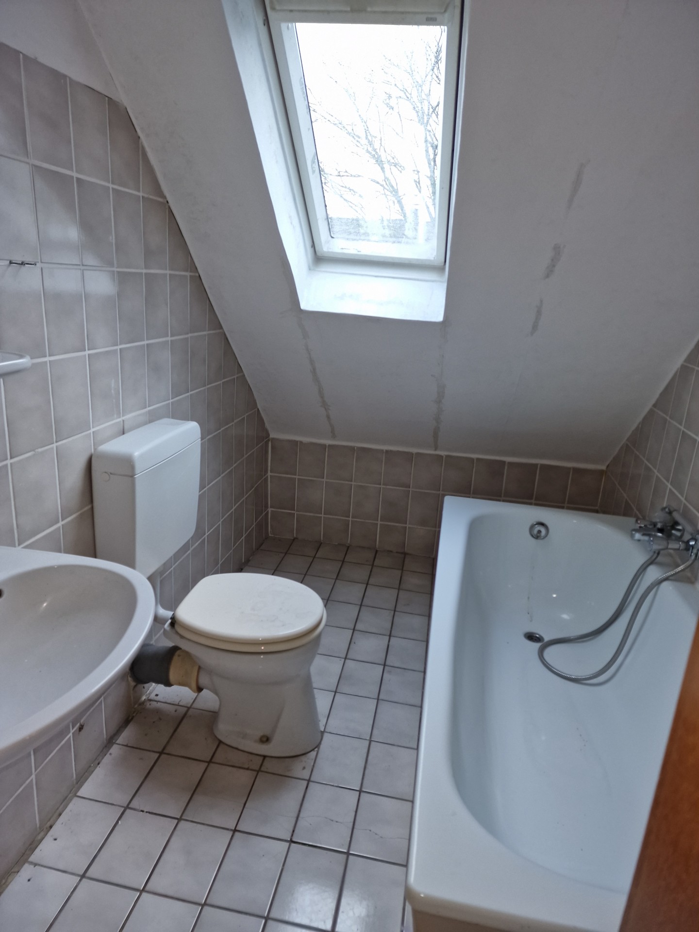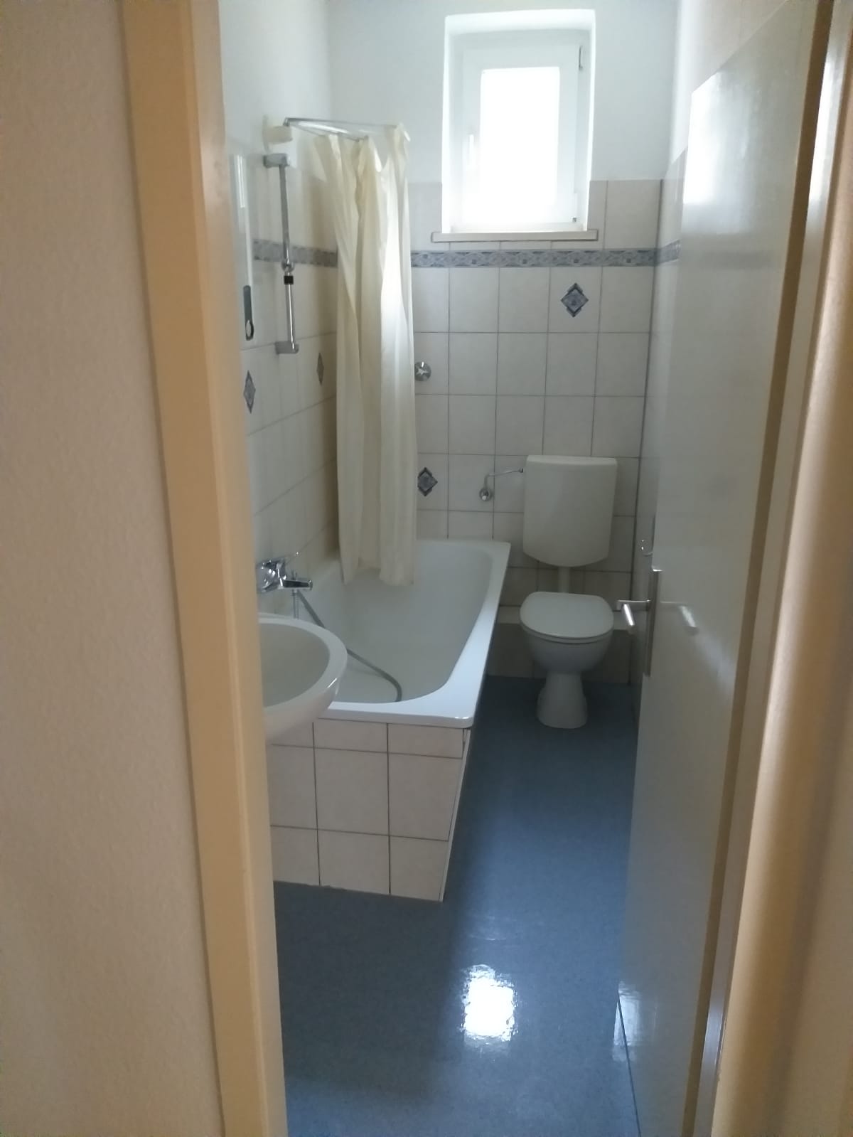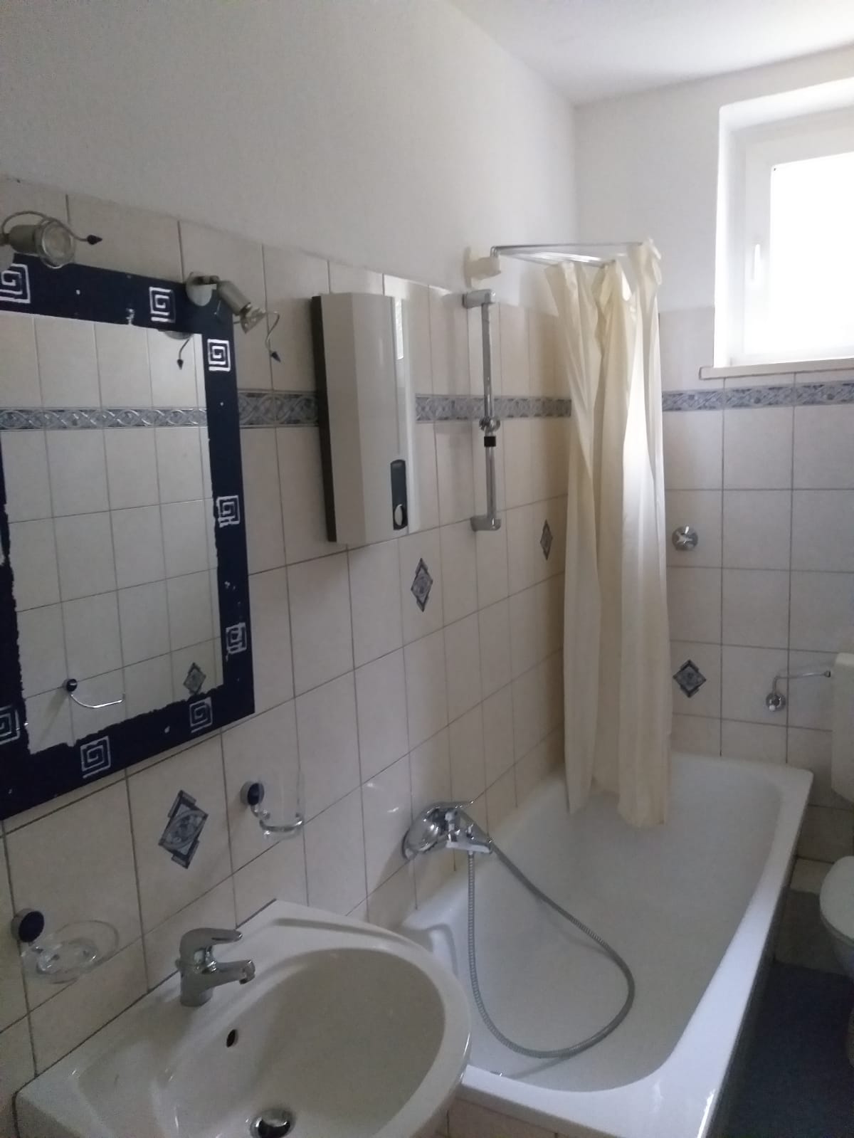 •Bad mit Wanne, Waschbecken, WC, gefliest