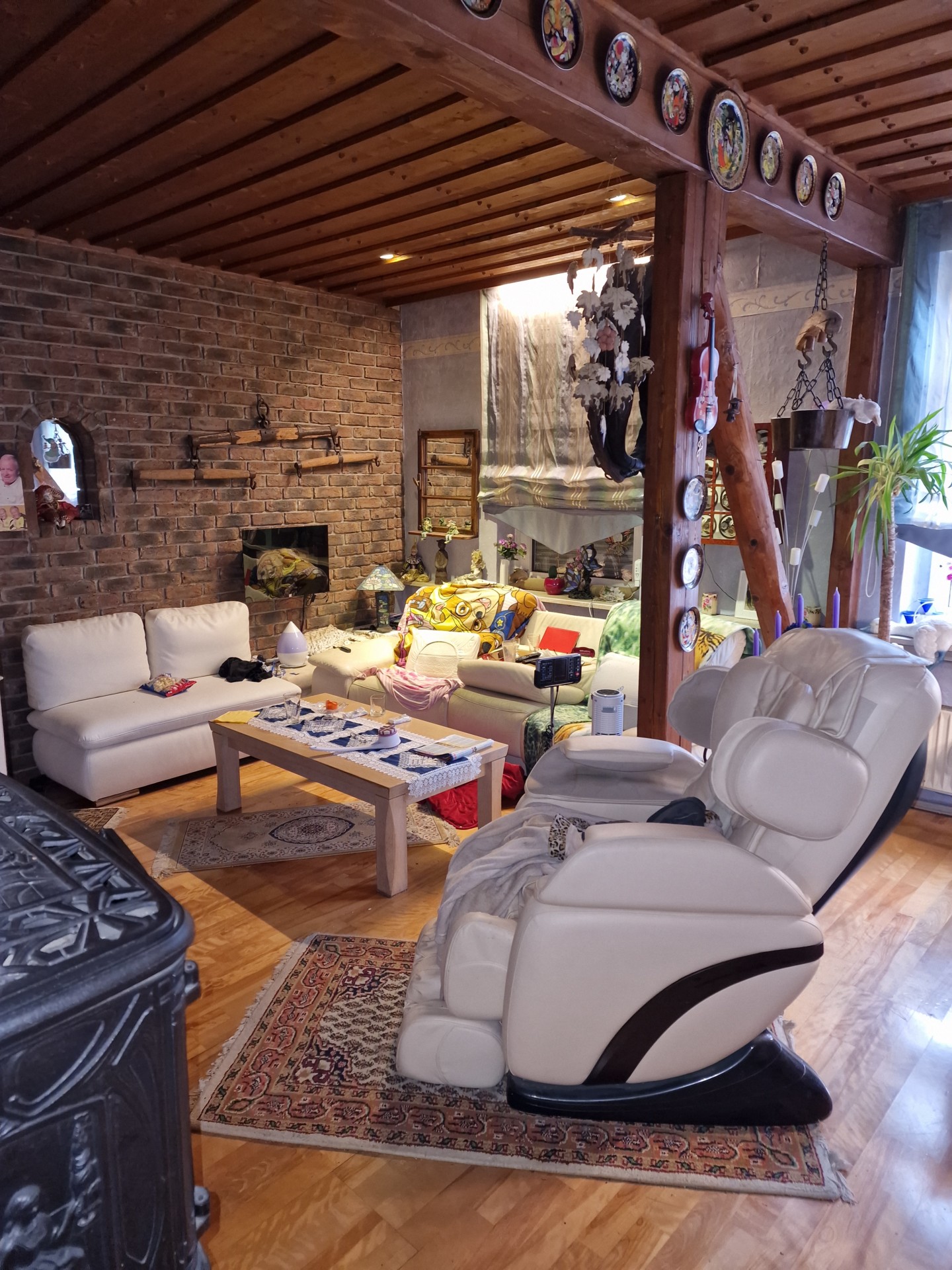 •Wände und Decken tapeziert, Innenputz und Holzvertäfelung